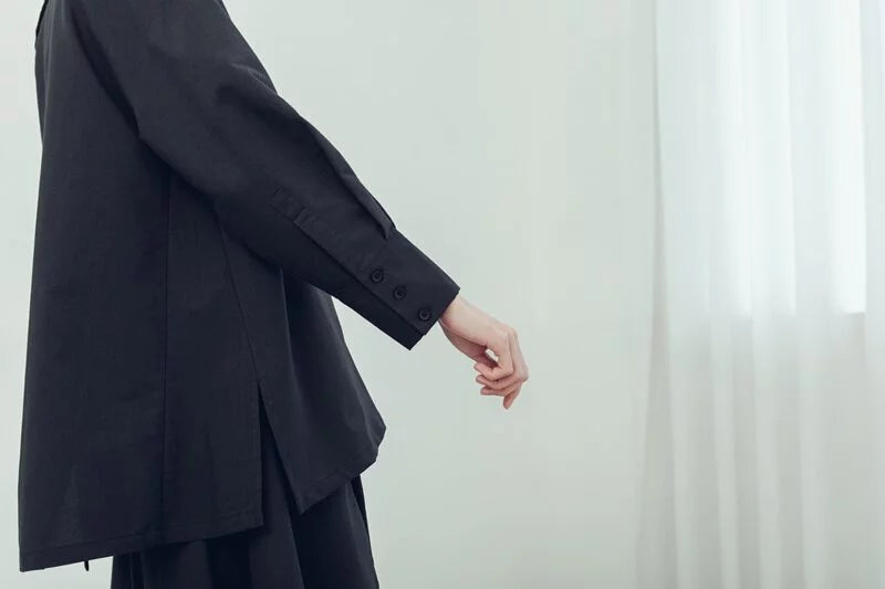 The design of the slanted half-front placket at the back echoes the slanted pleats at the front, and there is an additional pocket on the side, making it both practical and suitable for your daily wear.