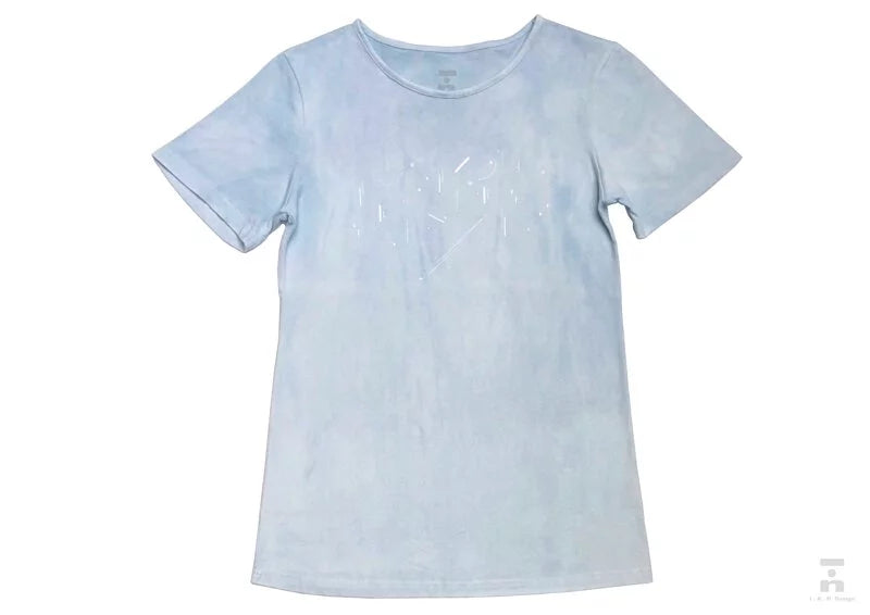 捨去繁複的裝飾與鮮豔的色彩,將純白色的有機棉布料,染上淡淡的藍染染液,
